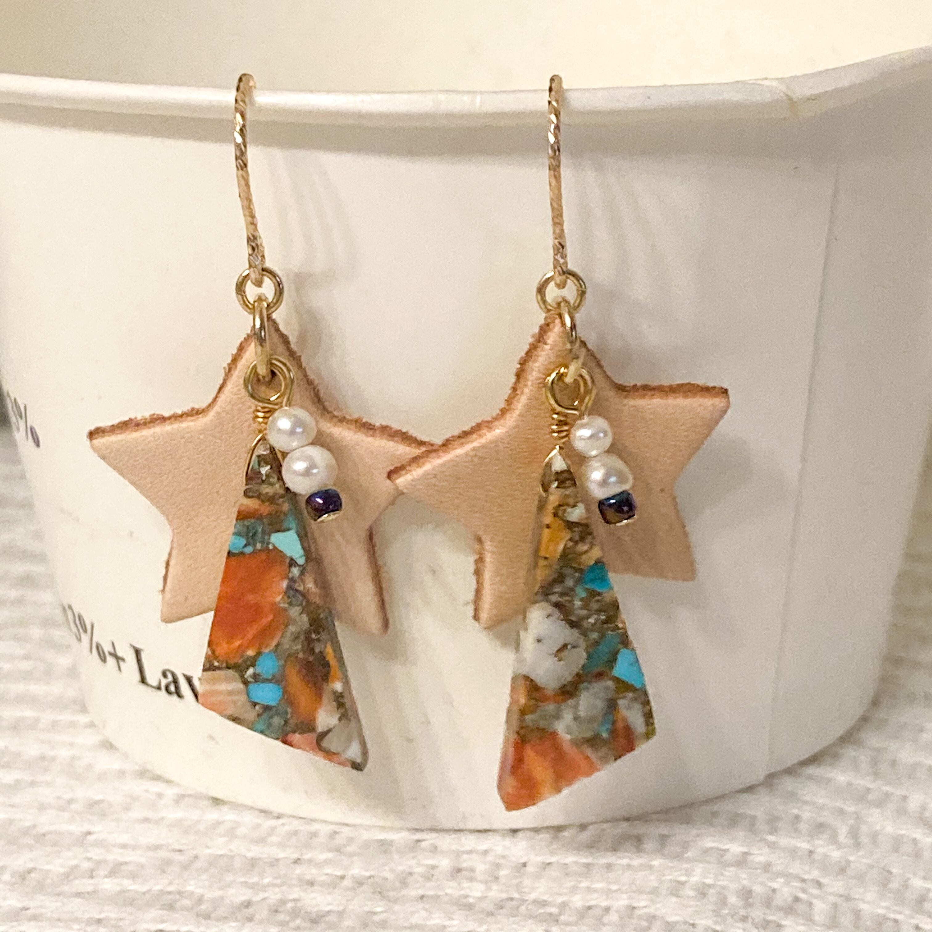 オイスターコッパーターコイズの香るピアス/イヤリング スター 14kgf