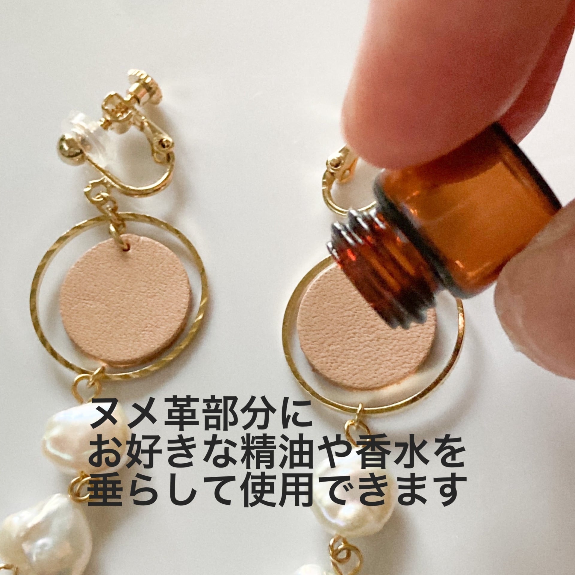 香るアクセはヌメ革の部分に、お好きな精油や香水を垂らしてお使いいただけます。