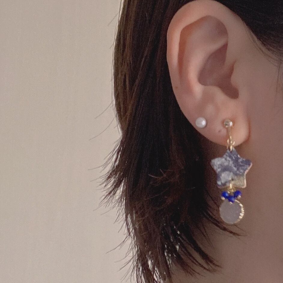 【香るアクセ/粋彩SUISAI】galaxy 銀河 レザーイヤリング/ピアス