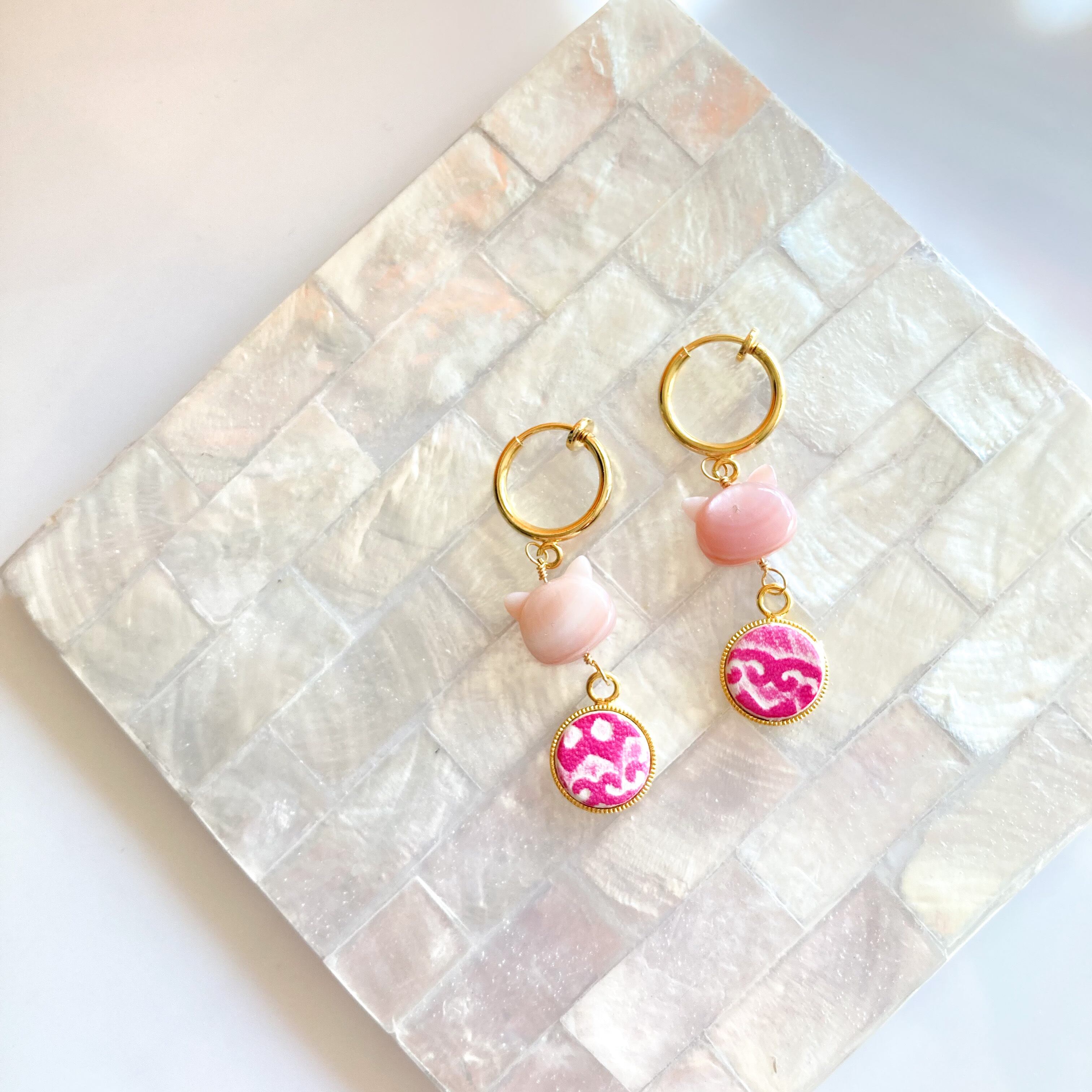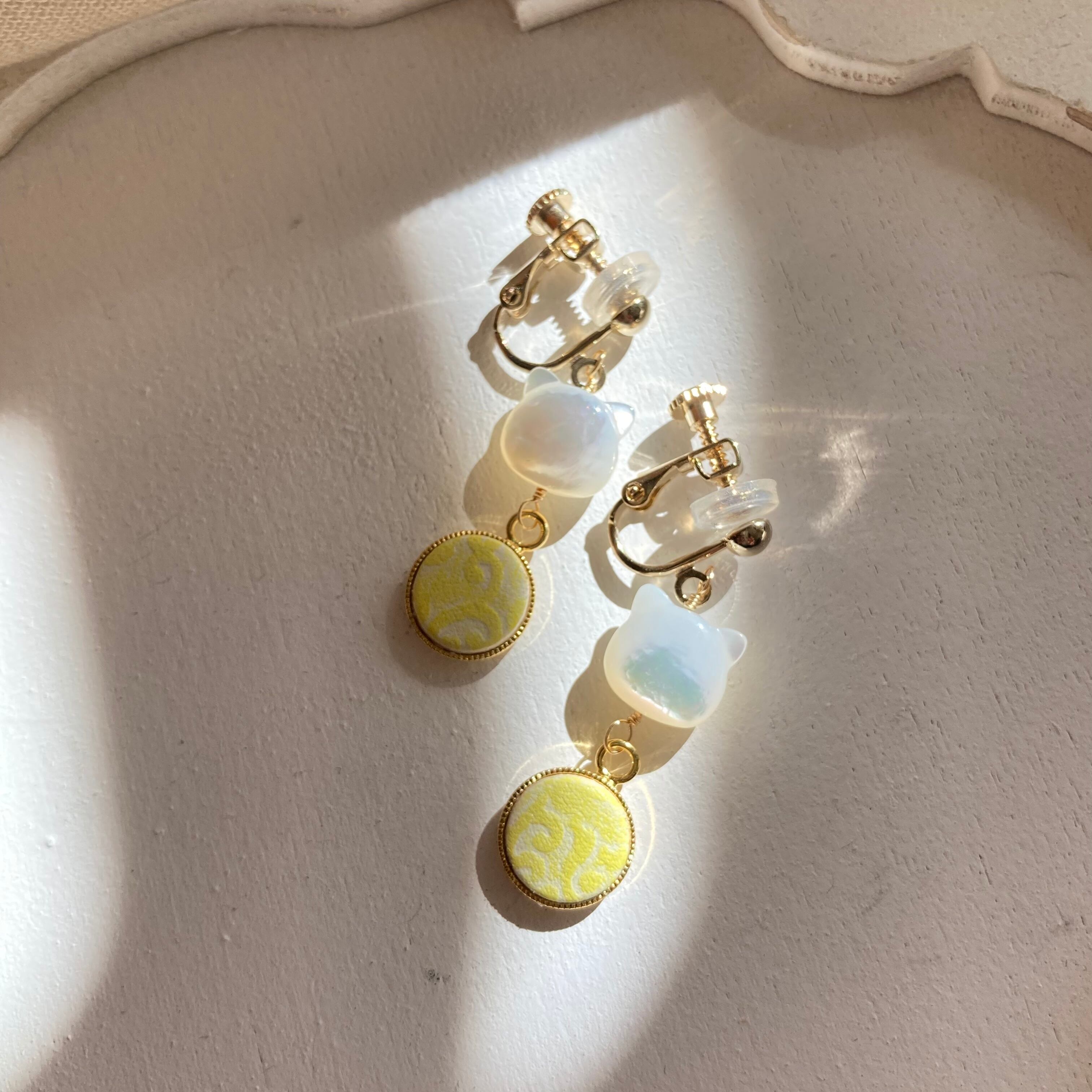 ねこアクセサリー 手染めレザー アロマテラピー 香るピアス®︎/イヤリング