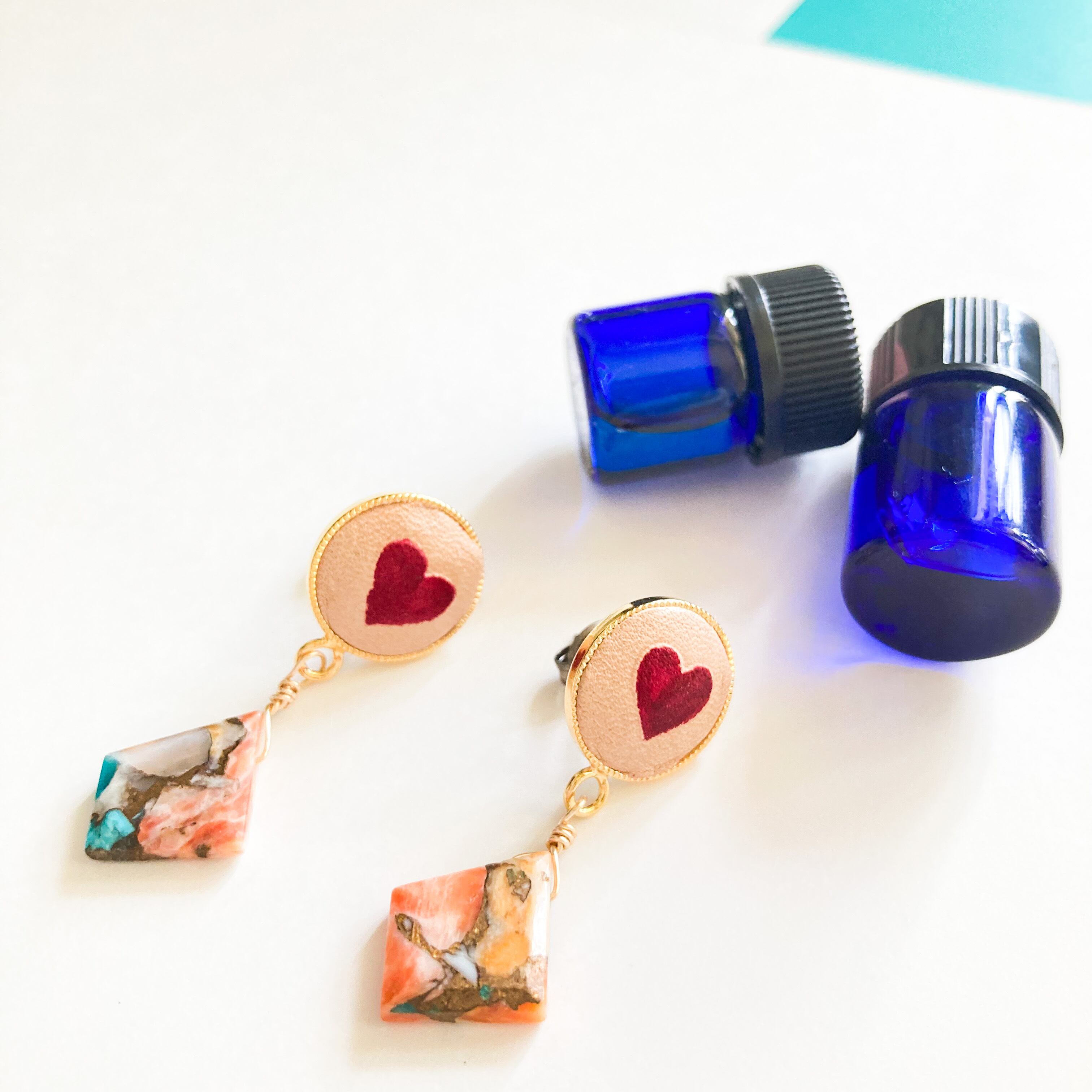 ハートレザー&オイスターコッパーターコイズイヤリング/ピアス 香るアクセサリー・香るピアス® アロマテラピー